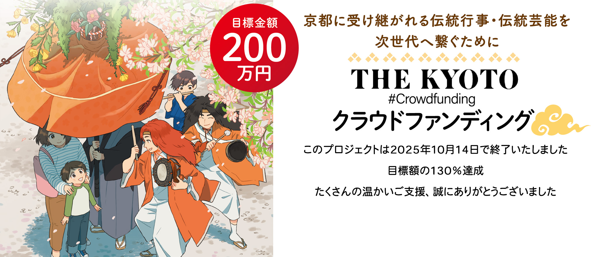 世界に誇る京の四大行事(葵祭、祇園祭、五山の送り火、時代祭)をはじめとする伝統的な祭礼、行事を後世に引き継ぐためには、祭りの執行に係る費用、鉾や衣装などの修理費用、人材の育成など多大な経費がかかります。