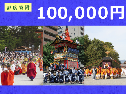 ご希望に応じて、京都三大祭の応援席や文化財関連扇子にご応募頂きますと、抽選の上、ご希望の品をおおくりいたします。京都の文化財のためにご支援をお願いいたします。